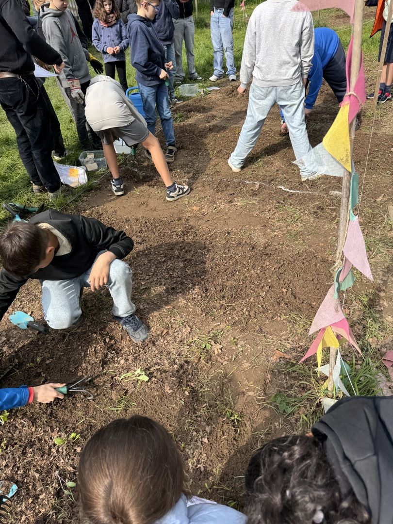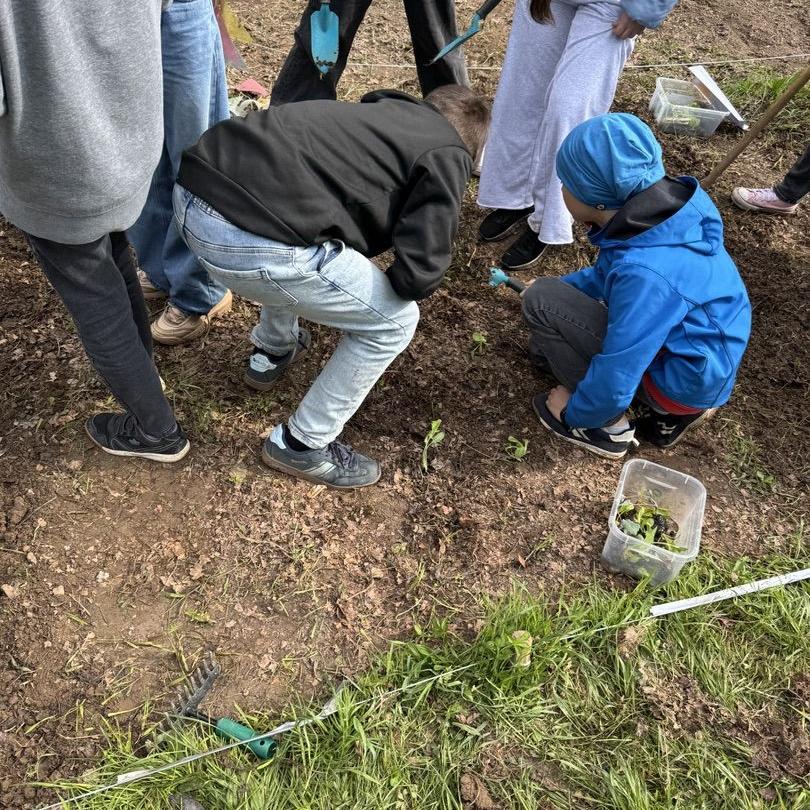 Jedes Beet wurde mit unterschiedlichen Gemüsesorten bepflanzt, die mit unterschiedlichen Pflanztechniken in den Boden gebracht werden mussten. Unterstützt wurde dies durch Anleitungskarten und, noch viel wichtiger, unsere engagierten Ackerbuddies, Ackerfans aus der 9ten und 6ten Klassen, die tatkräftig unterstützt haben und als Experten ihr Wissen weitergaben.