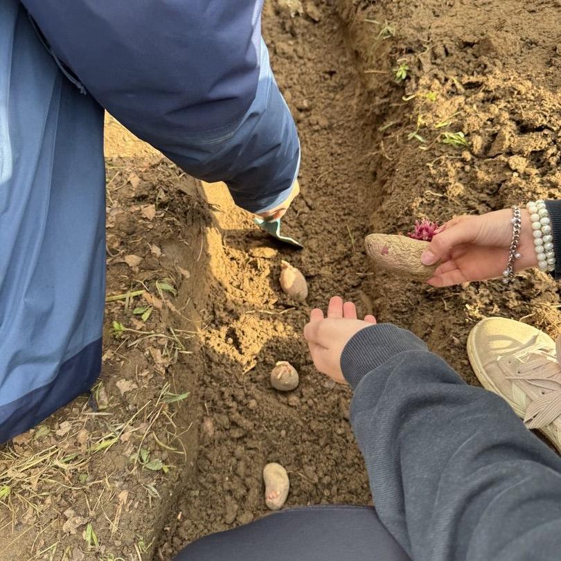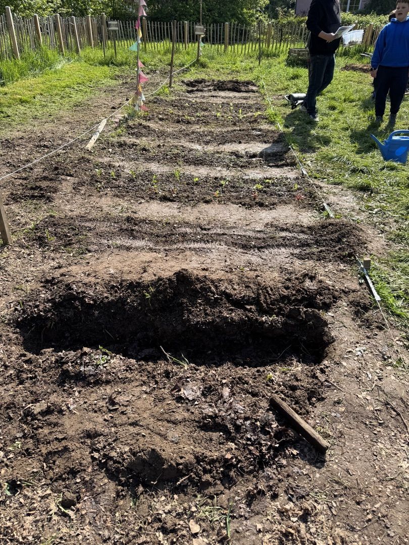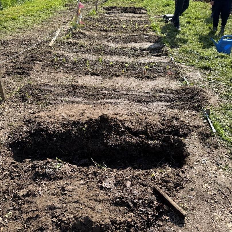 Bei strahlendem Sonnenschein konnten gestern die ersten beiden Ackerklassen aus dem 5. Jahrgang säen, pflanzen und Kartoffeln legen. Perfekte Startbedingungen fanden wir vor, die Ackerklassen hatten den Acker bereits gemulcht, umgegraben, die Beikräuter entfernt, den Boden gelockert und Wege getrampelt. Glück hatten wir auch mit dem Wetter, denn am Wochenende hatte es kräftig geregnet und der Boden war feucht und mit Sonne und Wärme konnten wir es nicht besser vorfinden.