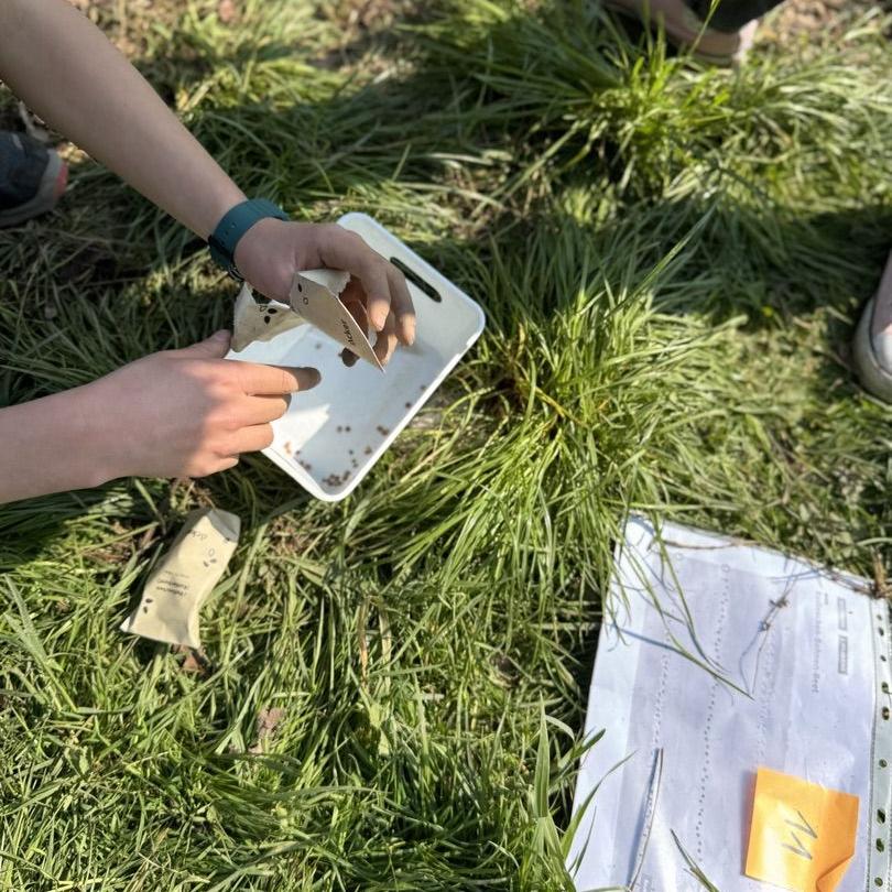 Unser Acker ist voll von Regenwürmern, darüber freuen wir uns riesig! Nach der Ernte und dem fleißigen Jäten der Beikräuter konnten wir sogar noch neue Samen ausbringen! Samen von Spinat, Radieschen, Chinakohl, Feldsalat und Mairüben wurden fleißig mit Sand vermischt, dann wurden Furchen gezogen und anschließend in Reihen gesät.