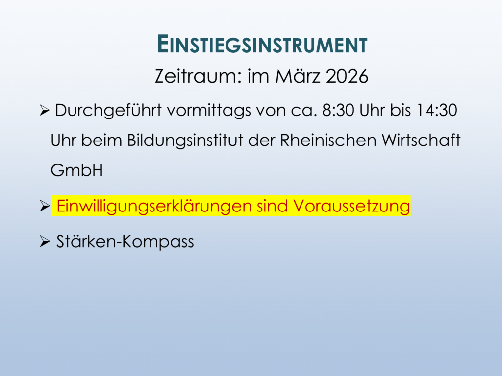 - Einstiegsinstrument (ehemals Potenzialanalyse)