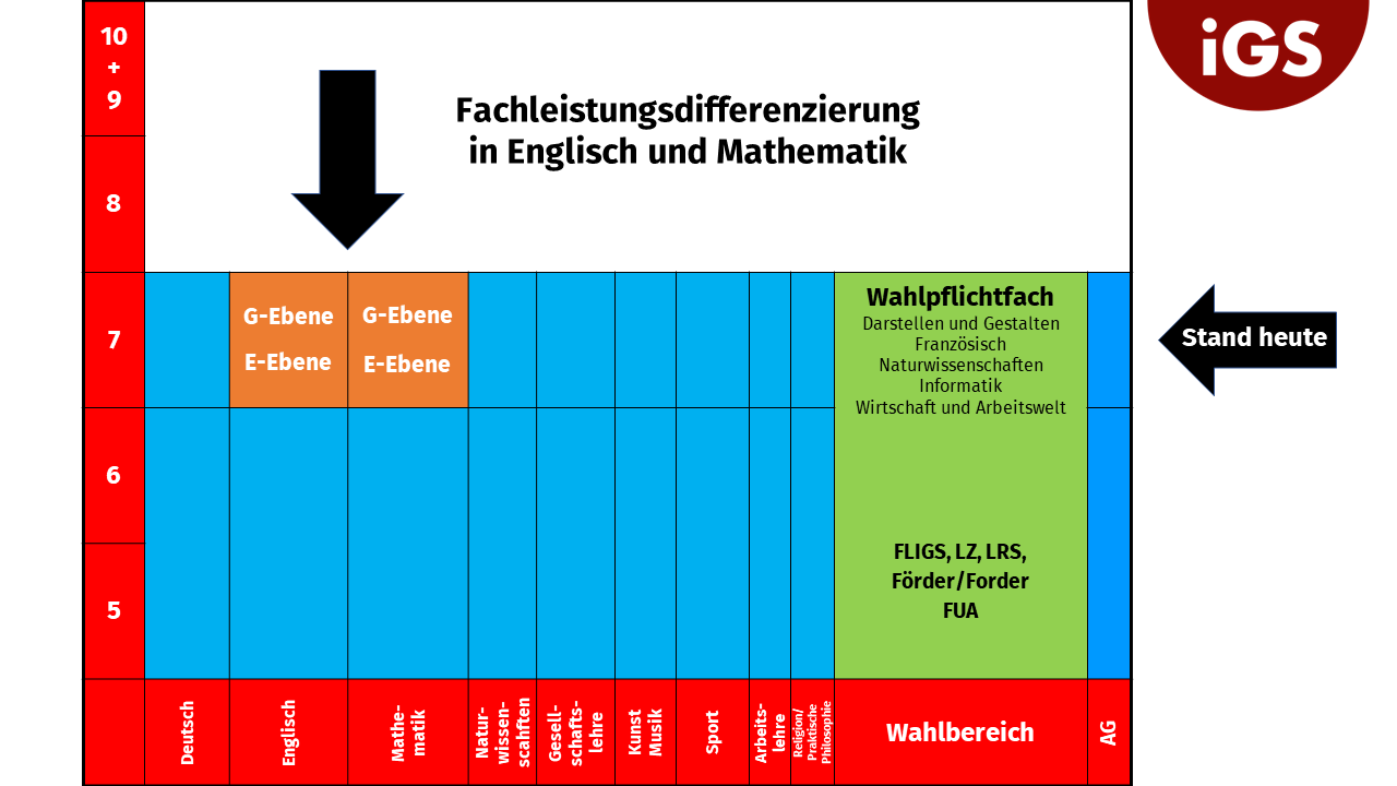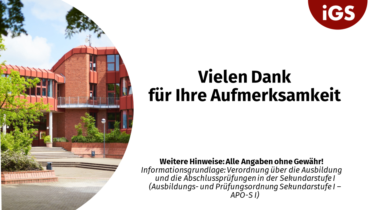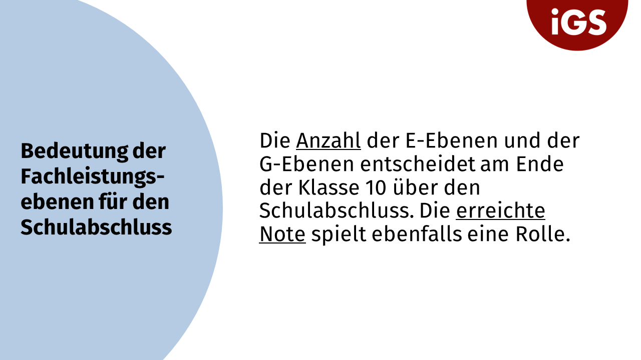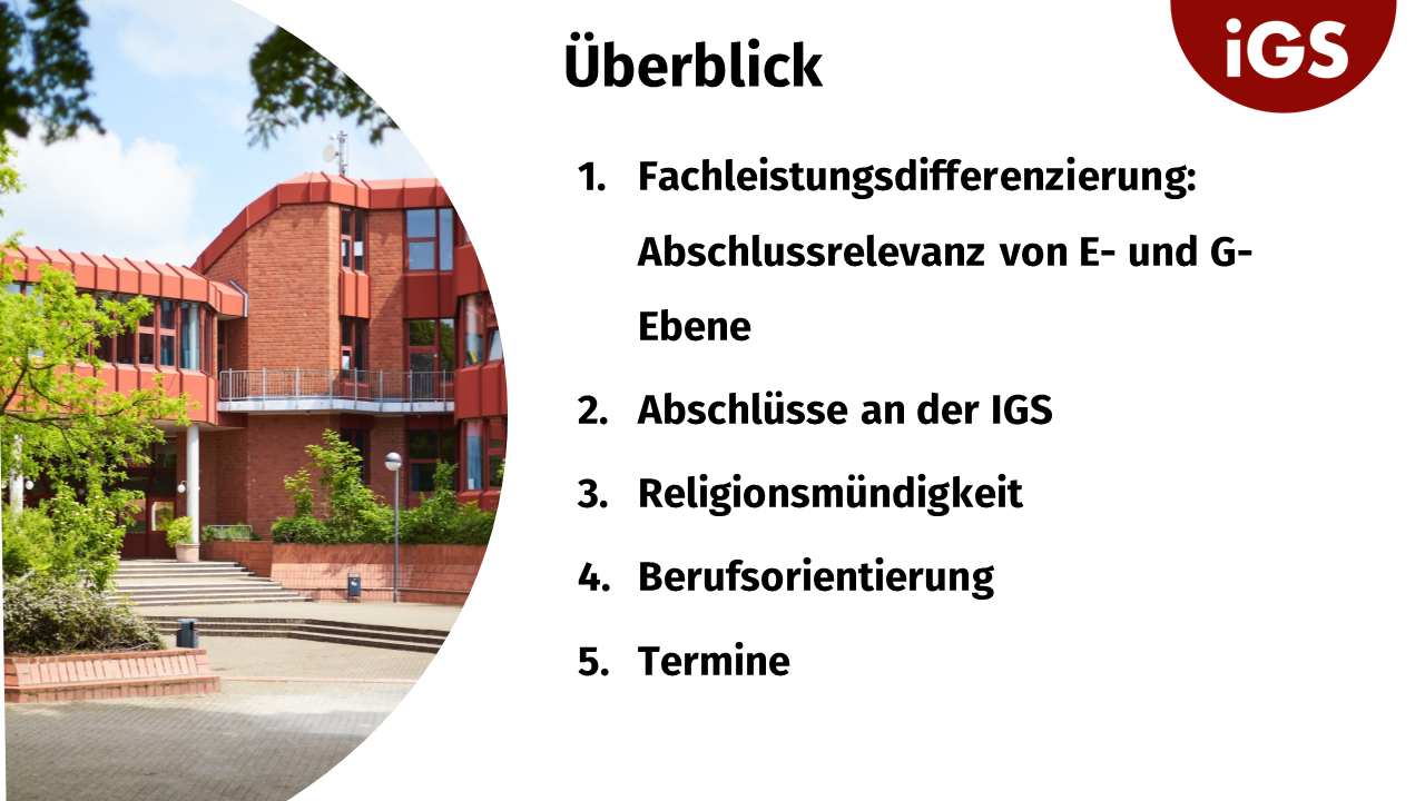 • Fachleistungsdifferenzierung: Abschlussrelevanz von E- und G-Ebene • Abschlüsse an der IGS • Religionsmündigkeit • Berufsorientierung • Termine