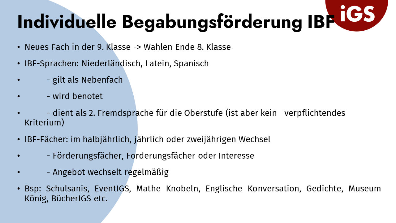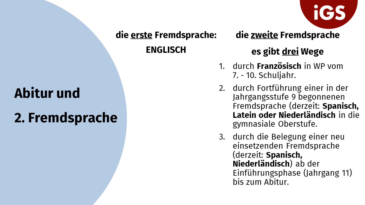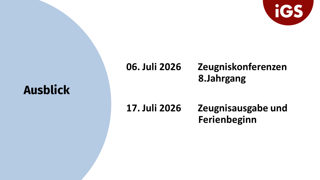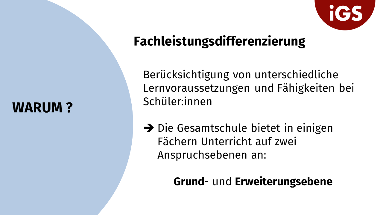 • Fachleistungsdifferenzierung: Abschlussrelevanz von E- und G-Ebene • Abschlüsse an der IGS • Religionsmündigkeit • Berufsorientierung • Termine