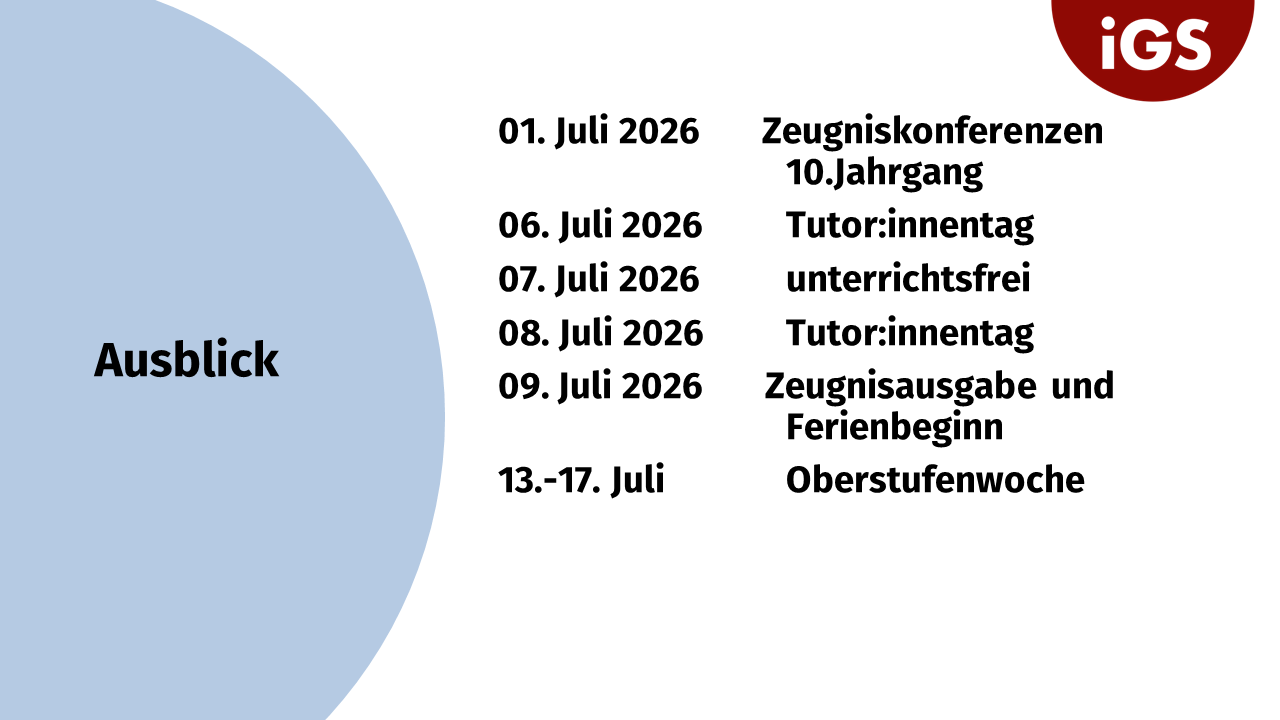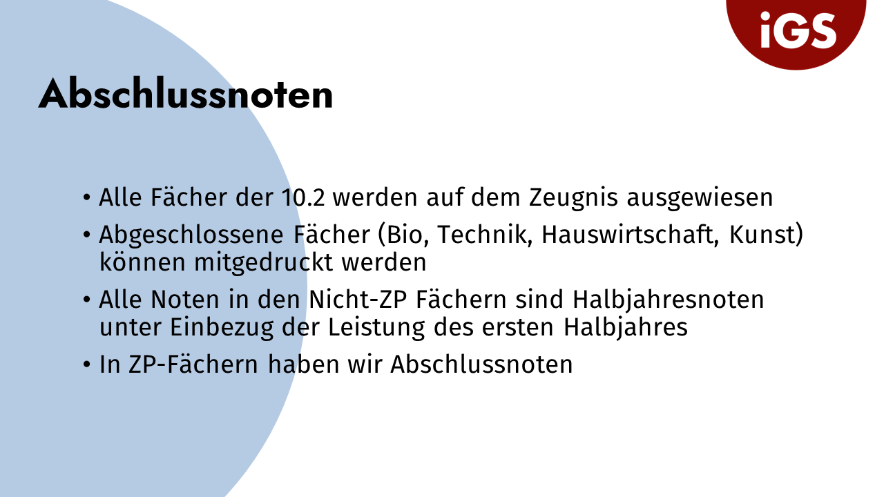• Abschlüsse an der IGS• ZP Infos• Abschlussnoten• Termine