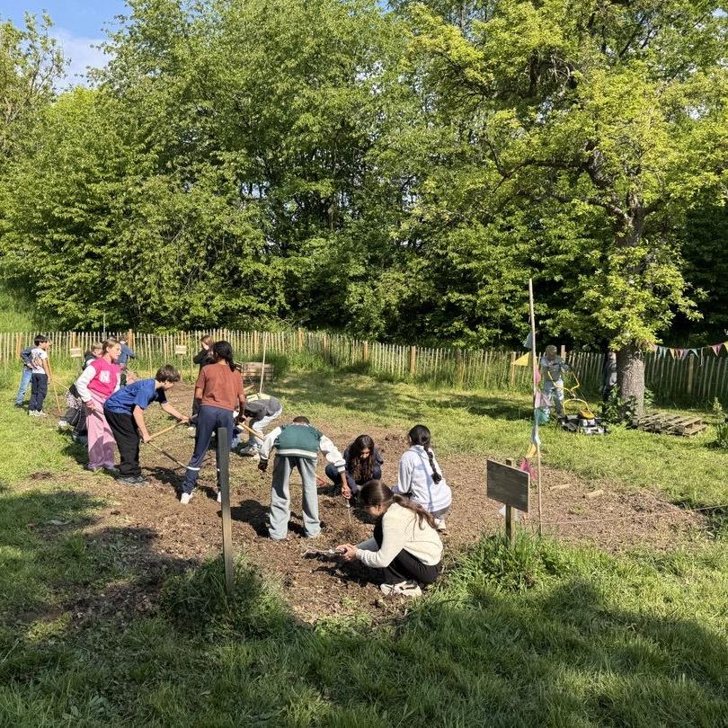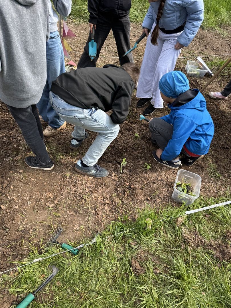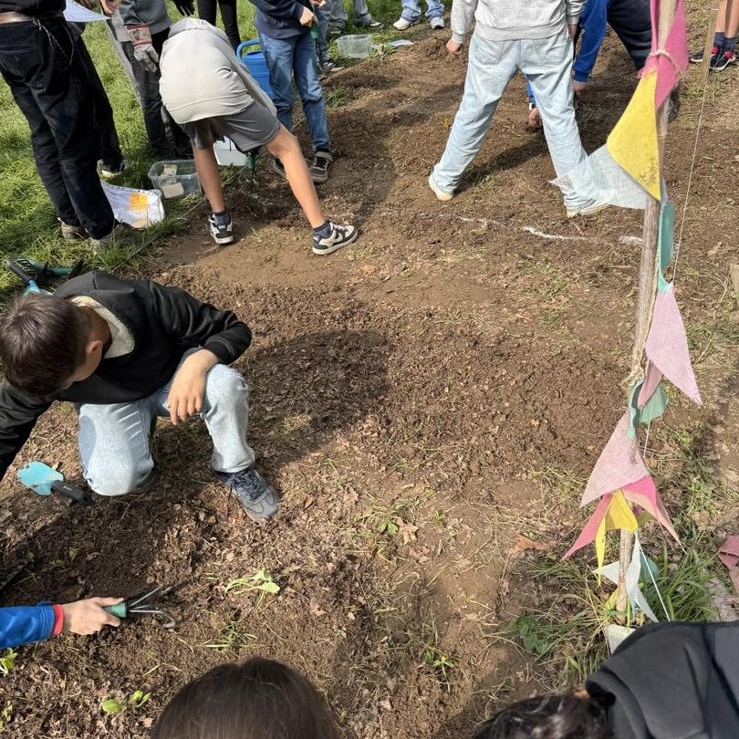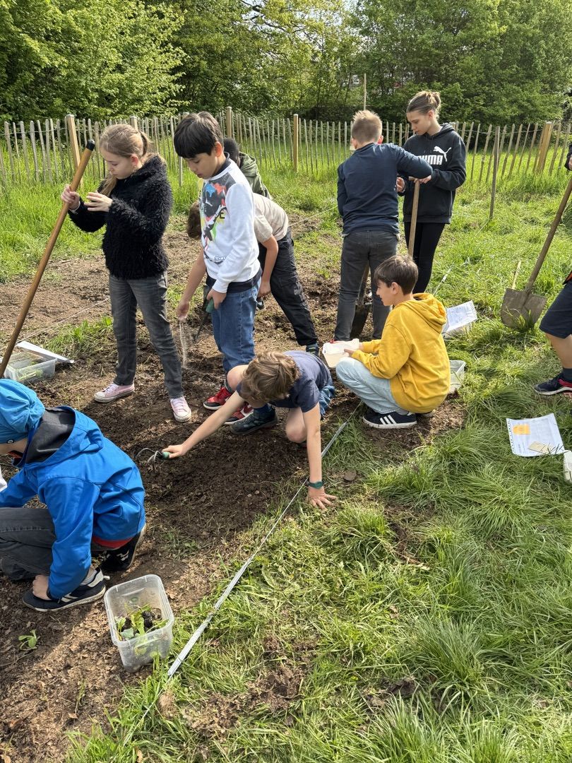 Jedes Beet wurde mit unterschiedlichen Gemüsesorten bepflanzt, die mit unterschiedlichen Pflanztechniken in den Boden gebracht werden mussten. Unterstützt wurde dies durch Anleitungskarten und, noch viel wichtiger, unsere engagierten Ackerbuddies, Ackerfans aus der 9ten und 6ten Klassen, die tatkräftig unterstützt haben und als Experten ihr Wissen weitergaben.